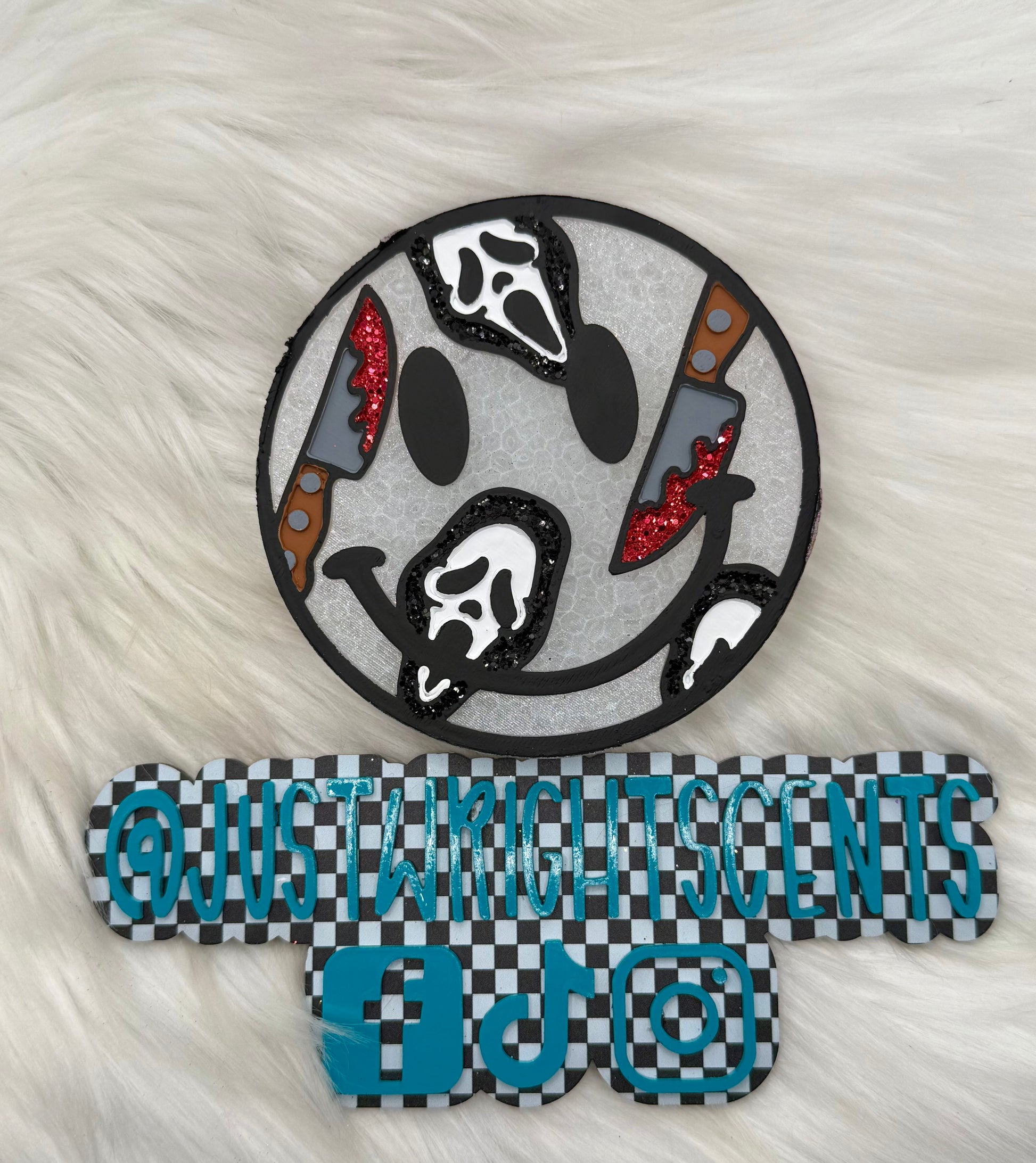 Hand decorated car freshie. Each freshie comes with a hook and string.